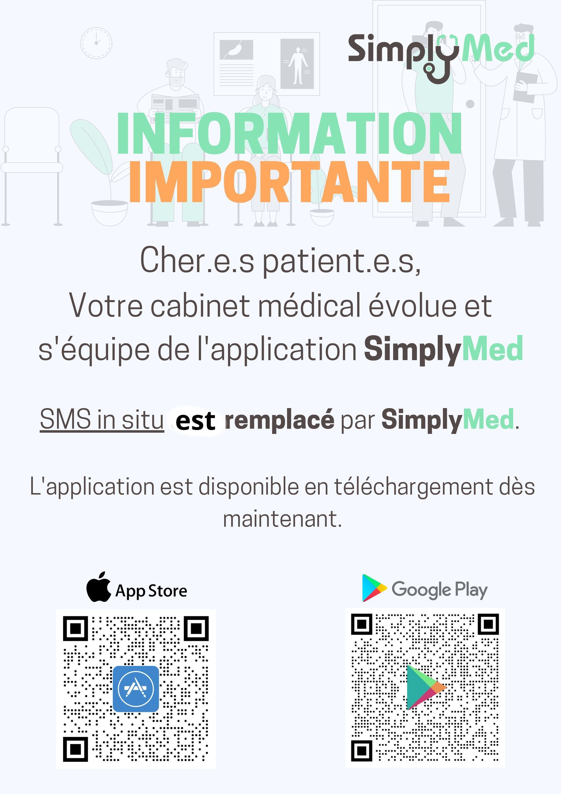 Vous pouvez aussi joindre notre secrétaire par téléphone pour qu’elle vous enregistre et le notifie au médecin.